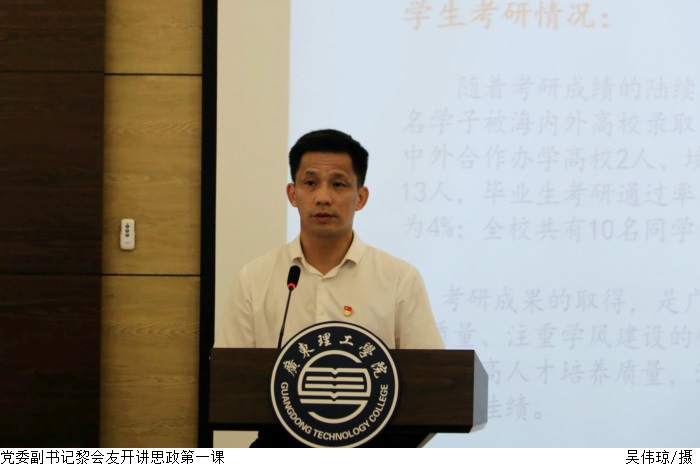 本网讯(宣传部 林粤湘)9月15日下午,党委副书记黎会友以“坚守初心,勇担使命,绽放青春风采,以实际行动迎接党的二十大胜利召开”为主题,在鼎湖校区行政楼三楼学术报告厅为2022级新生讲思政第一课。讲座由建...