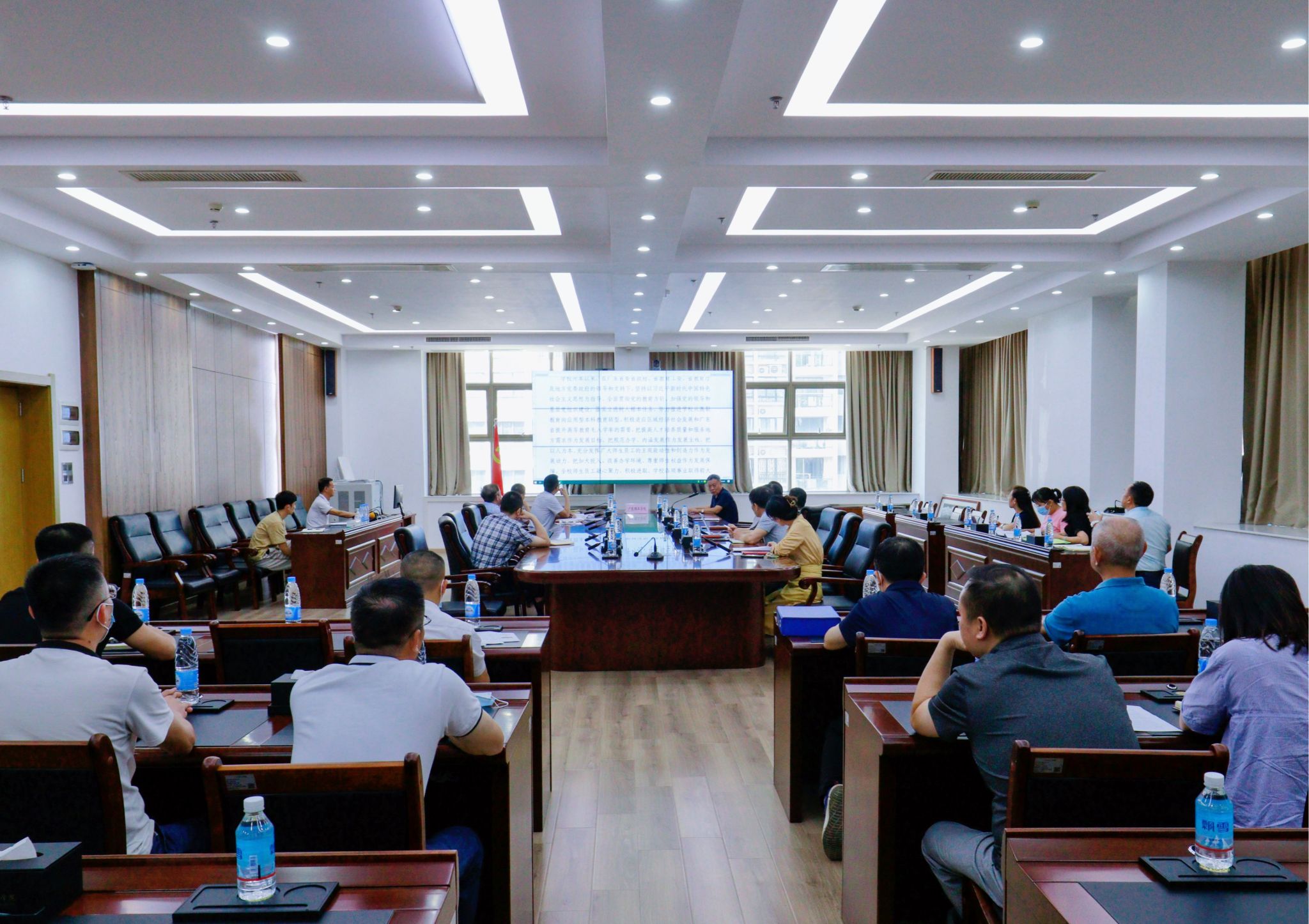 本网讯(宣传部 刘赛赛)9月26日下午,beat365官网在综合楼12楼会议室召开合格评估自评报告审核会,对学校迎评数据进行阶段性总结。学校领导、各院系、各部门负责人参加会议。