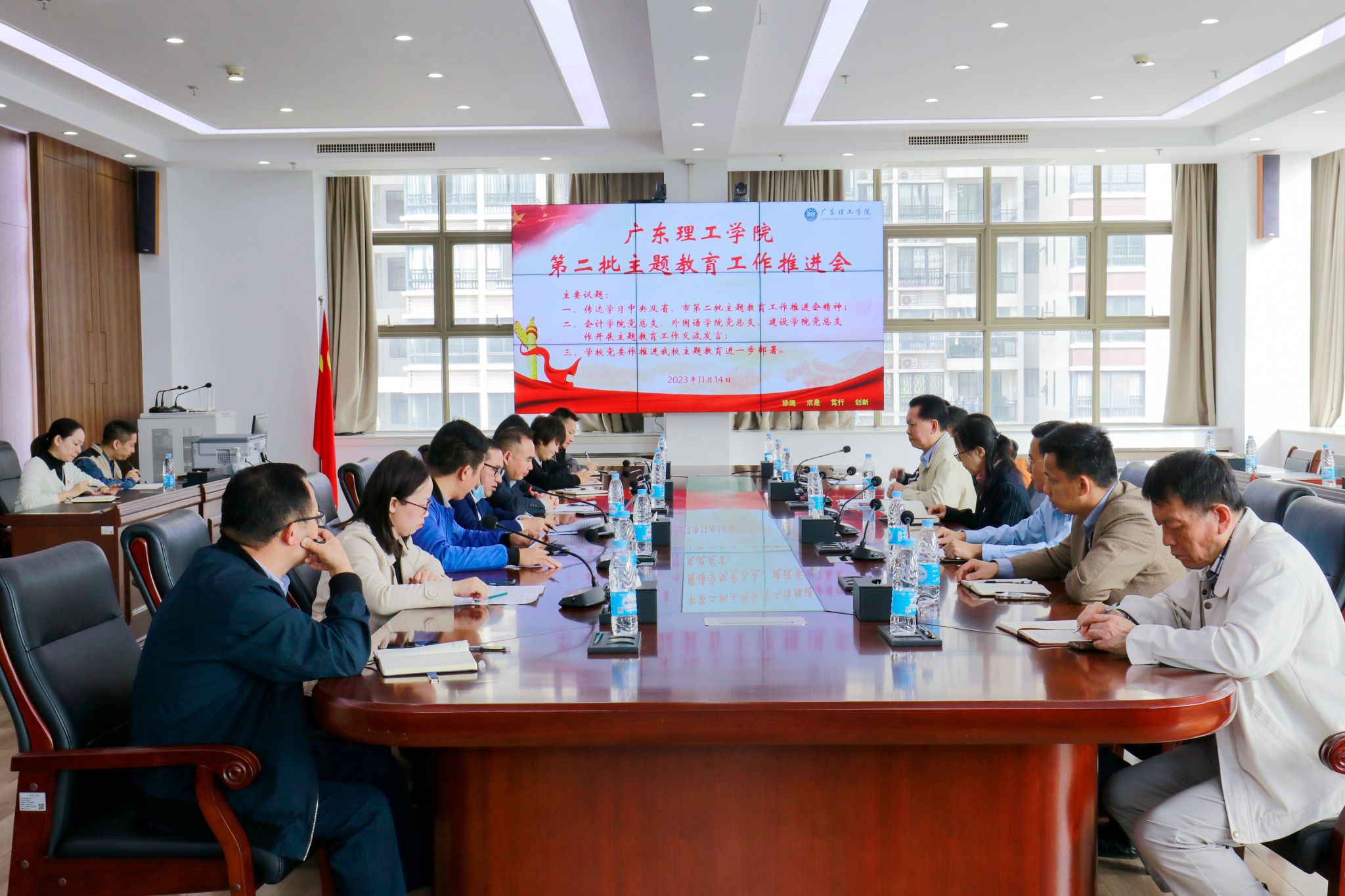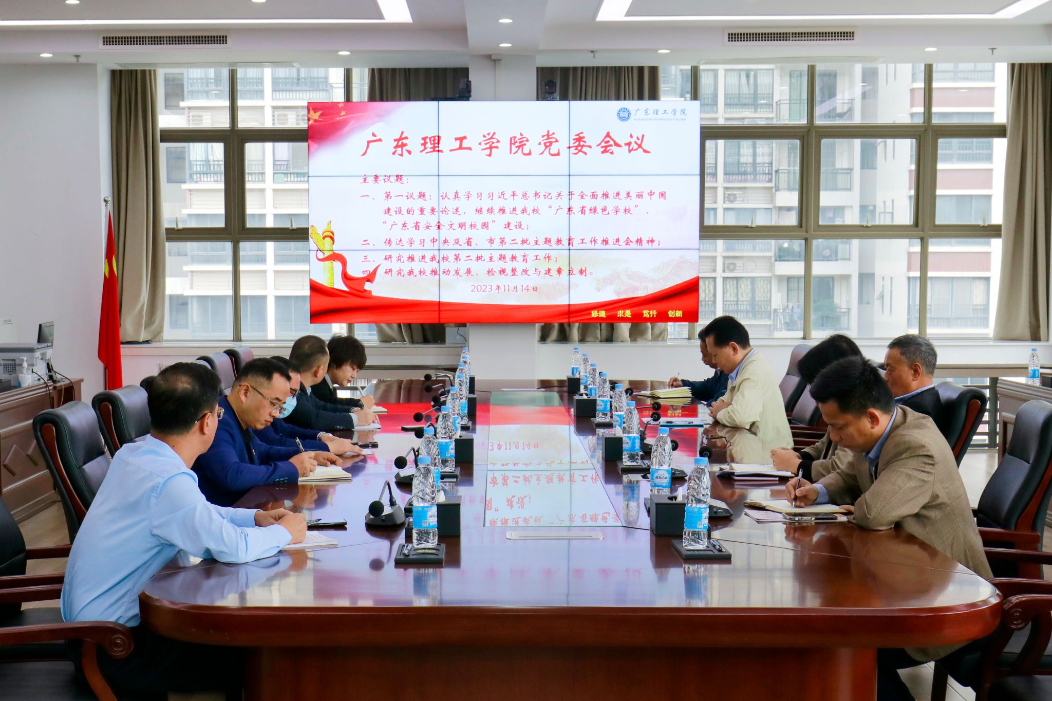 本网讯(宣传部)11月14日,beat365官网于综合楼12楼会议室召开党委会研究推进beat365官网第二批主题教育工作。本次会议围绕四个议题展开:会议第一议题是学校党委副书记黎会友领学习近平总书记关于全面推进美丽中国建设的重要论述,会议要求全方位、多渠道建设绿色低碳校园,厚植师生生态情怀,持续推进beat365官网“广东省绿色学校”、“广东省安全文明校园”建设;二是传达学习中央及省、市第二批主题教育工作推进会精神,进一步推动主题教育走深...